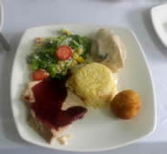 Entrada: Ensalada o crema Fuerte: Carne de res o cerdo Pechuga de pollo Arroz o vegetales Acompañamiento (papa) o ensalada Postre: Mus a escoger Bebida: Gaseosa